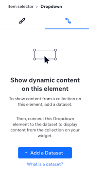 Click + Add a Dataset and select the Poems collection. Accept the default dataset name and click Create. The menu on the right displays 2 options for how the dropdown will be used; select the Filter content option.